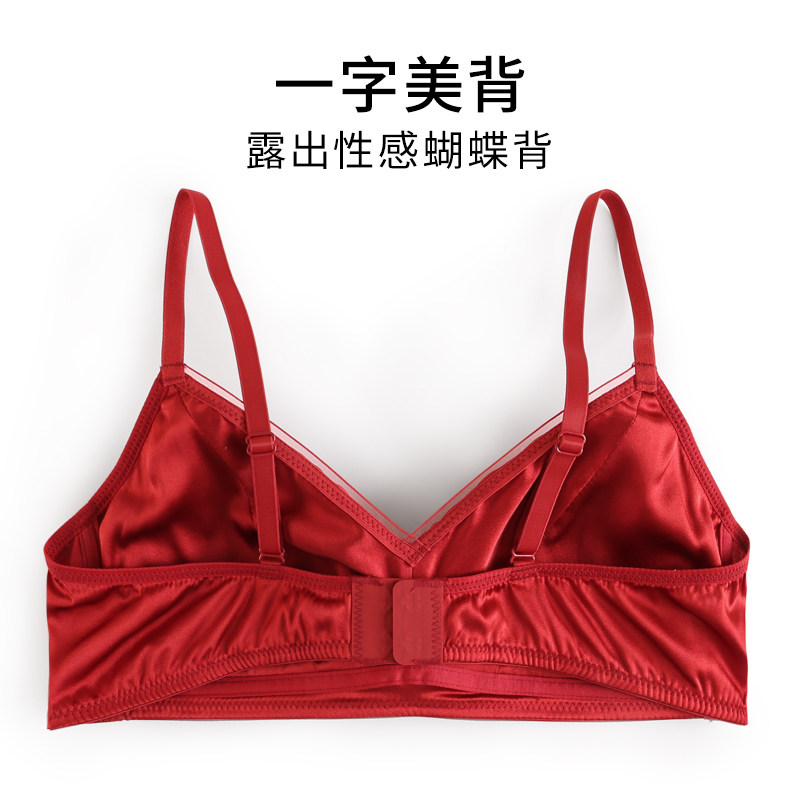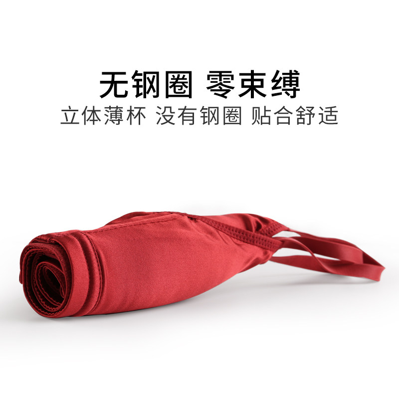 谷缇歌红色无钢圈缎面桑蚕丝文胸