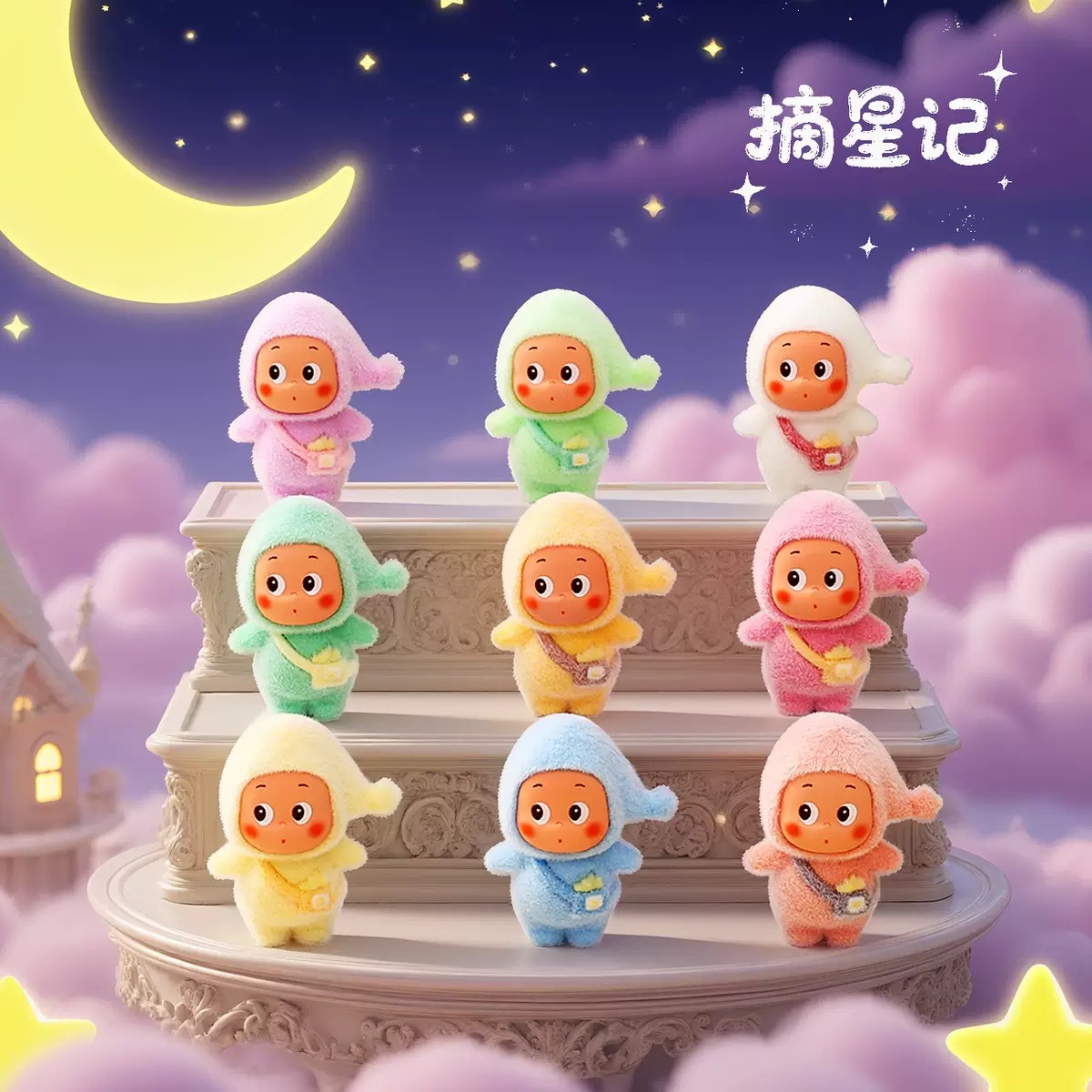 植绒挎包星星人萌粒摆件可爱卡通桌面装饰品潮玩公仔创意礼品批发