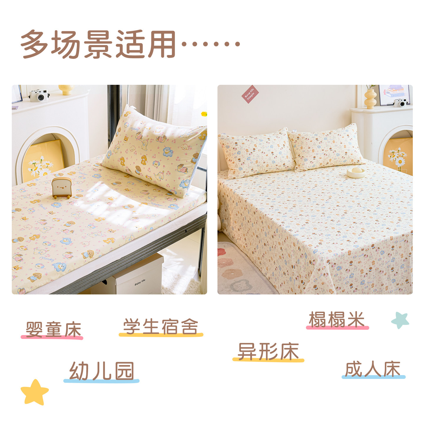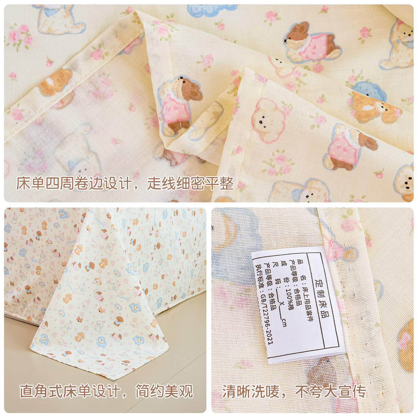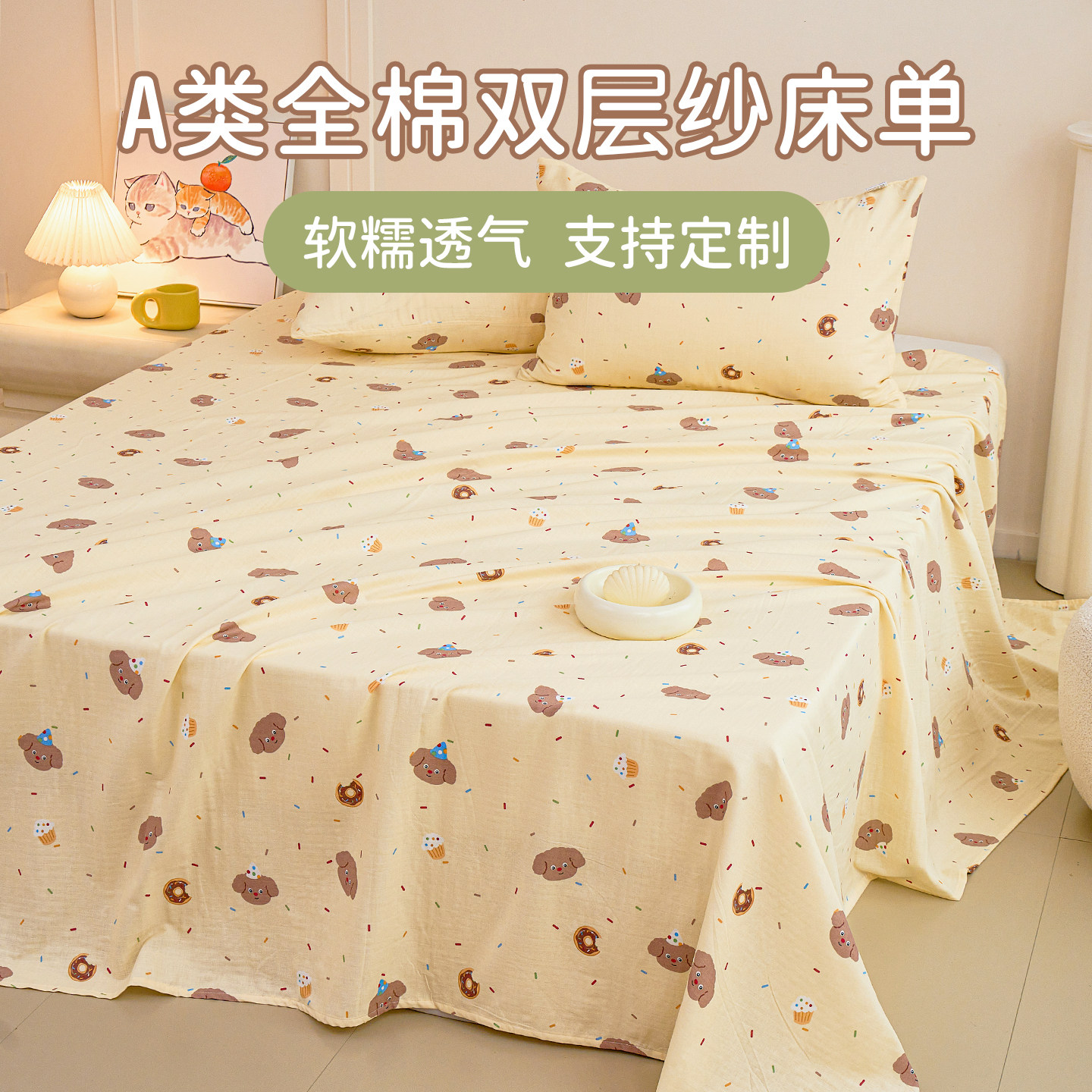 A类双层纱布儿童纯棉床单单件1.2米1.5/1.8m单双人学生宿舍床定制