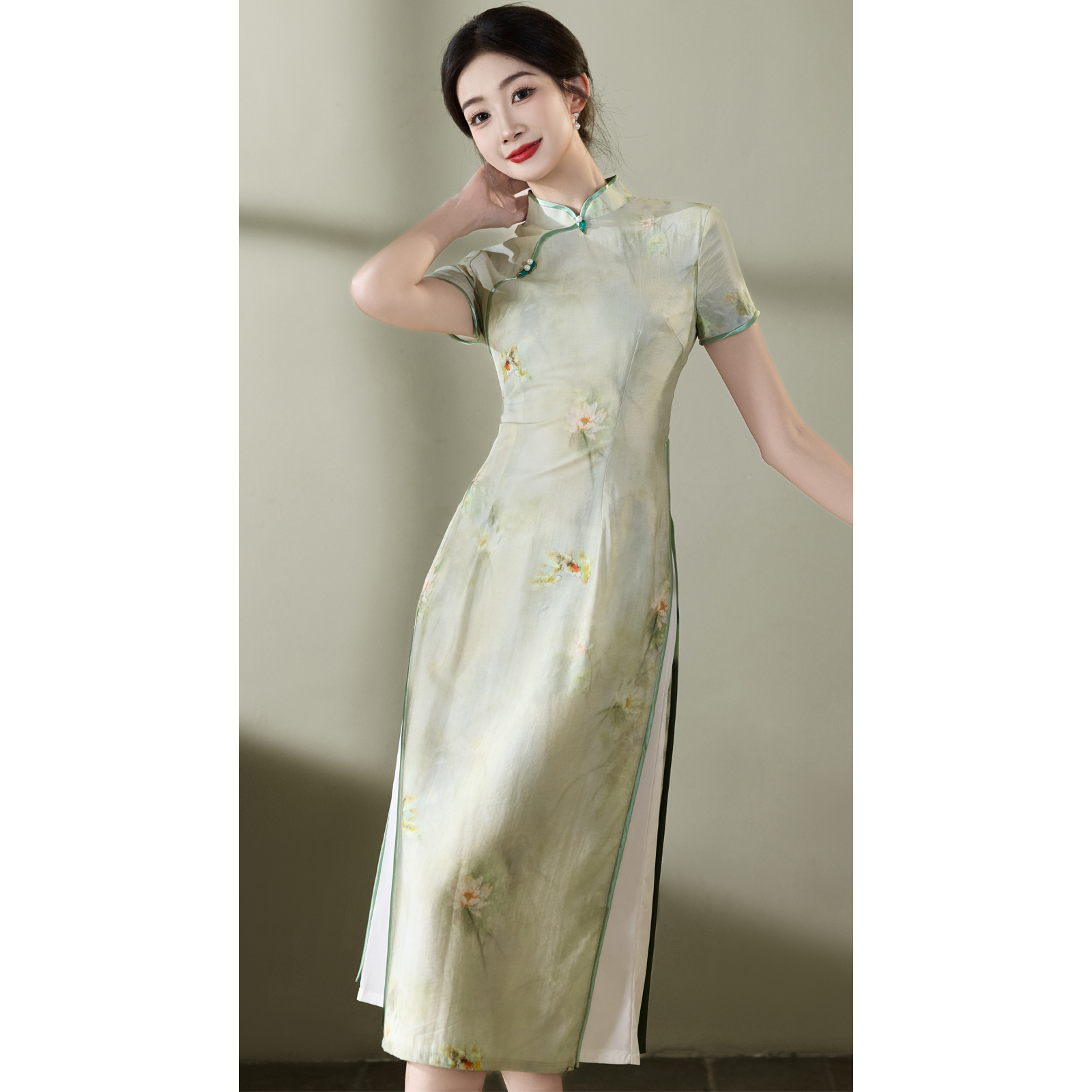 尘记【醉罗歌】夏季中式开衩旗袍气质改良时尚连衣裙显修身长裙