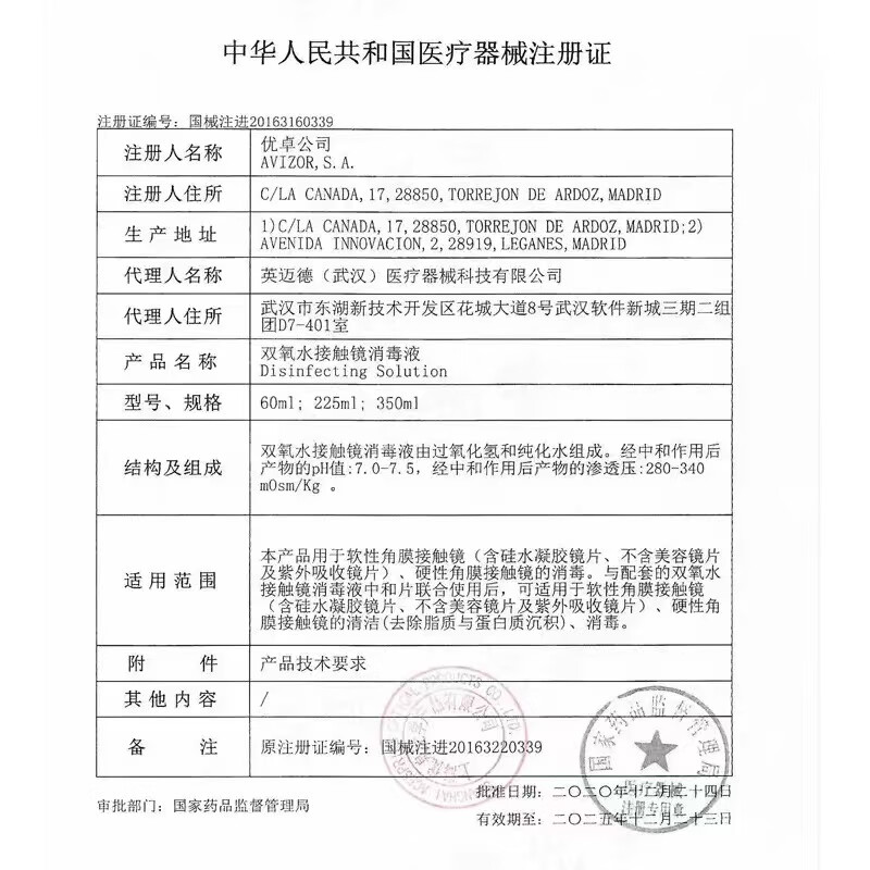 优卓优可伶双氧水225ml免搓洗硬性隐形眼镜角膜塑形镜护理液jnbl