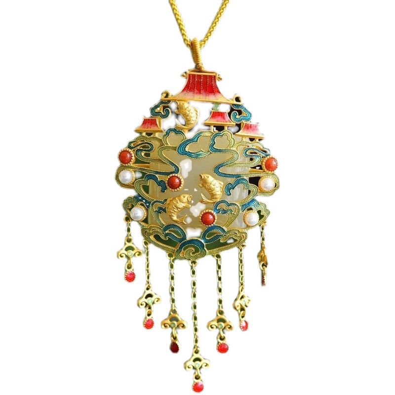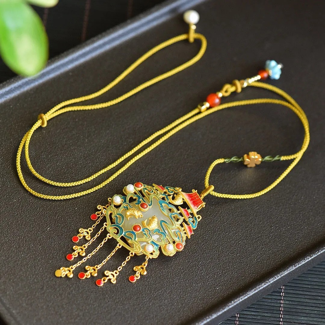鱼跃龙门和田玉吊坠女纯银镀金