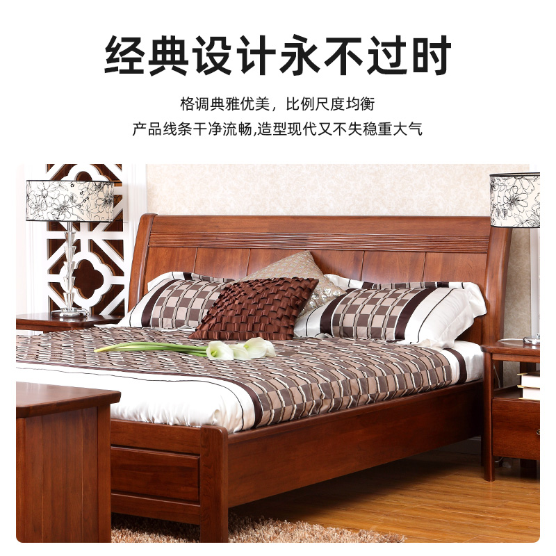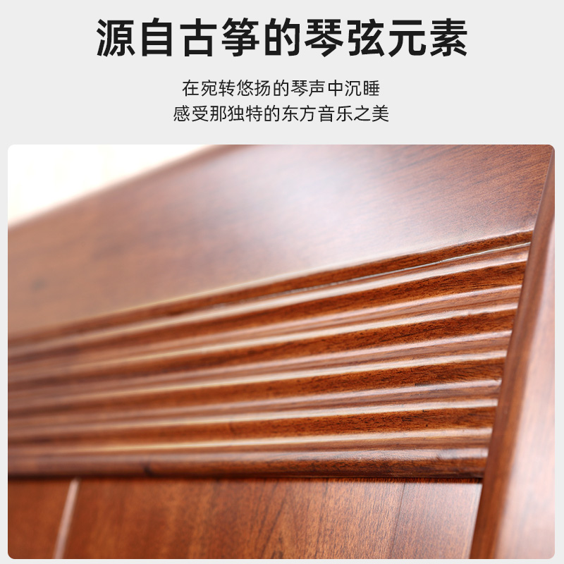 华鹤家具实木大床现代中式卧室主卧双人床实木床1.8米低床箱