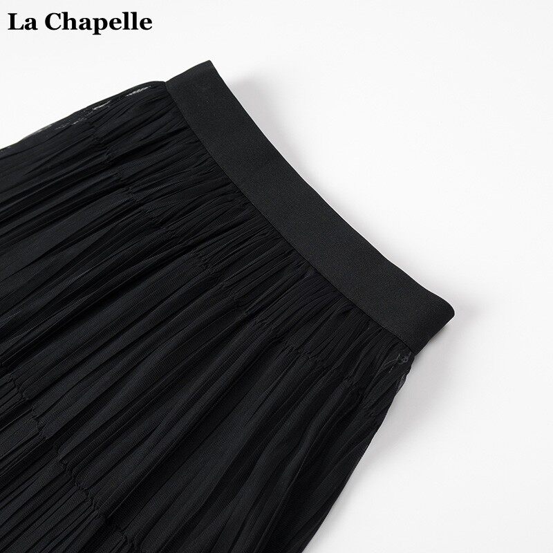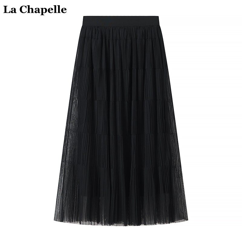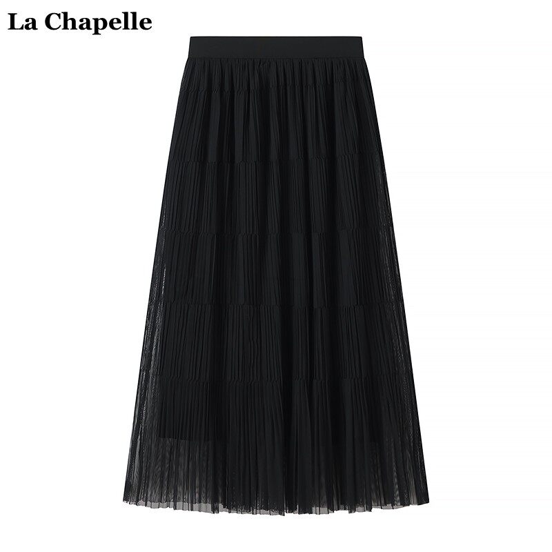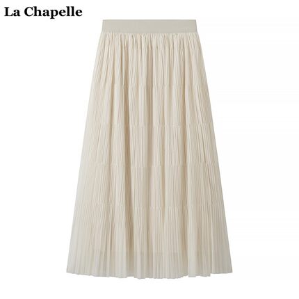 拉夏贝尔/La Chapelle高腰显瘦纯色百褶半身裙女春夏中长款A字裙