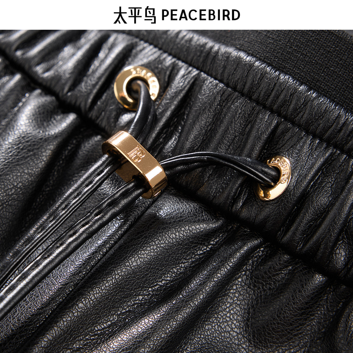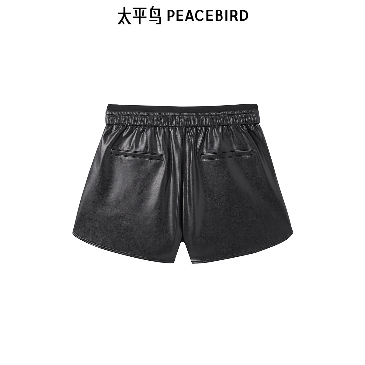 太平鸟女装秋冬肌理感PU轻奢质感橡筋腰休闲短裤女A1GCE4178