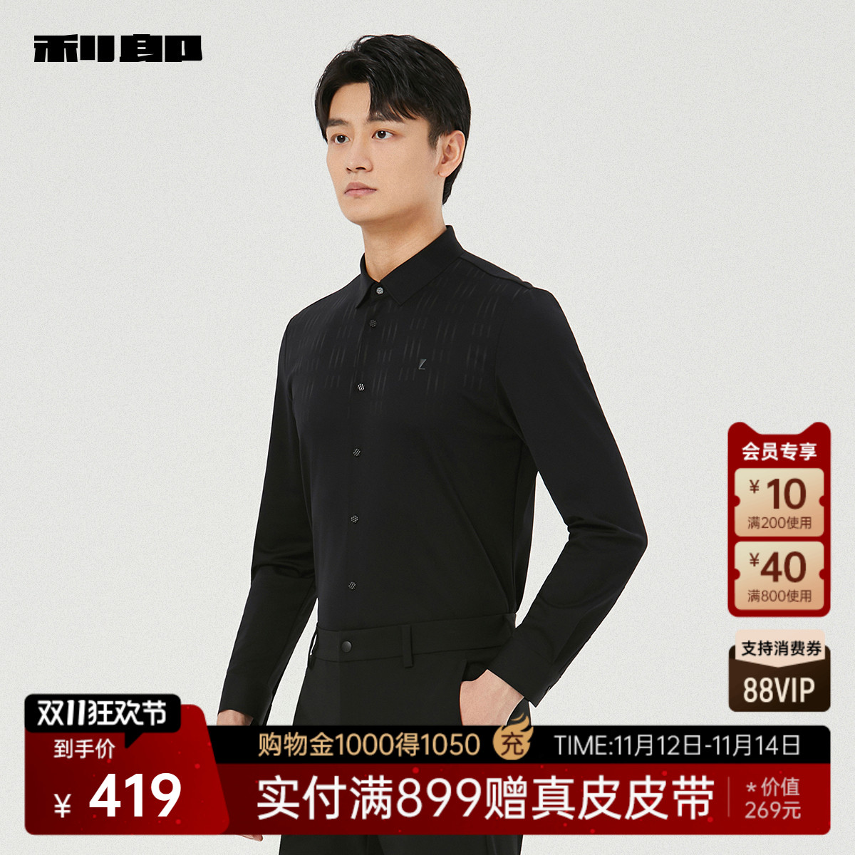 利郎官方长袖微弹衬衫男士2025秋季新款商务休闲修身黑色男装衬衣