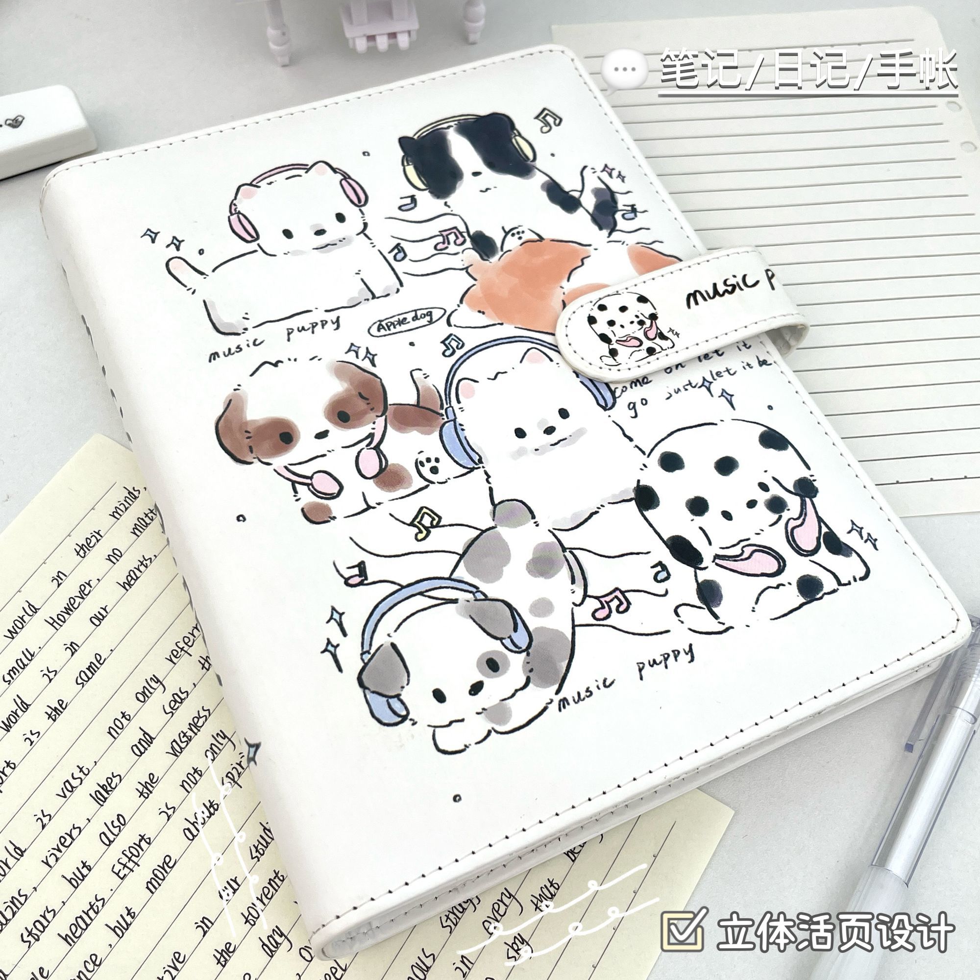 软皮磁扣活页笔记本高颜值可爱女生空白好看记事本a5日记手账本子