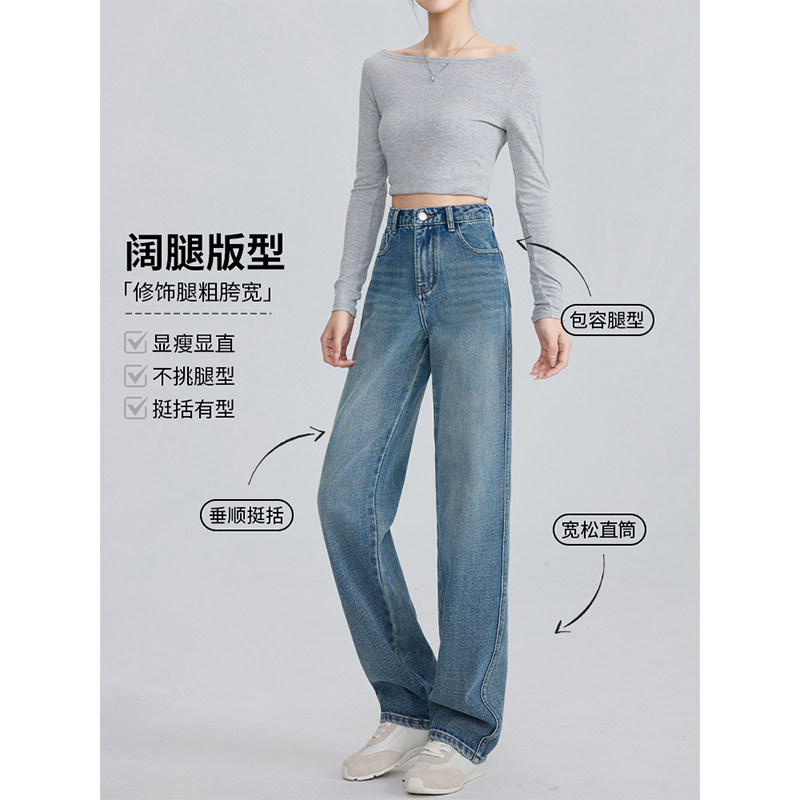 阔腿牛仔裤2025新款春季女高腰宽松小个子复古夏季薄款窄版直筒裤