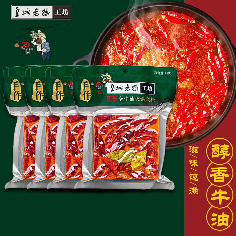 皇城老妈牛油火锅底料四川成都特产麻辣烫串串香冒菜调料410g*4袋