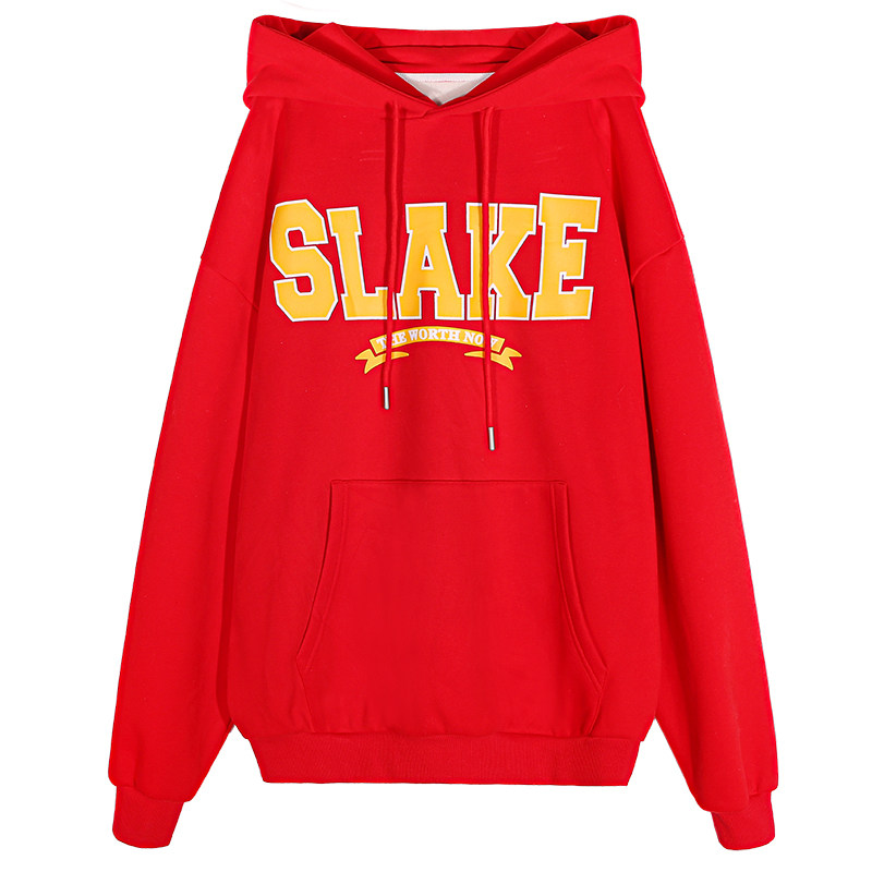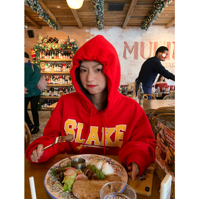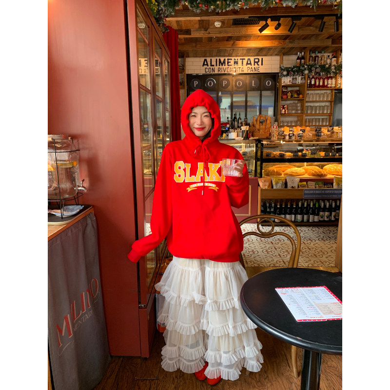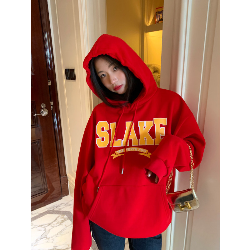 落落狷介 卫衣女冬加绒加厚2025新款红色连帽套头外套小个子宽松