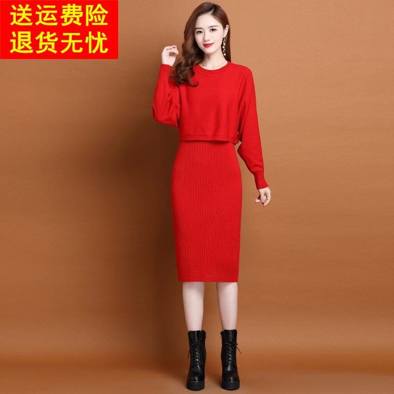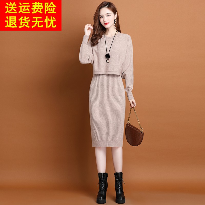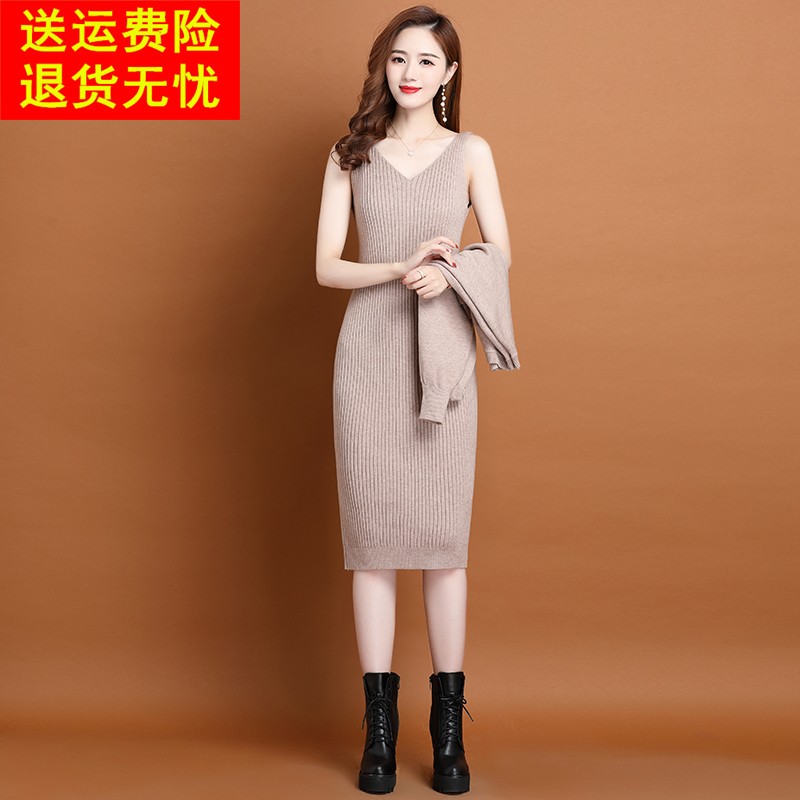 针织连衣裙女秋冬季2025新款品牌两件套包臀长裙春秋显身材套装裙