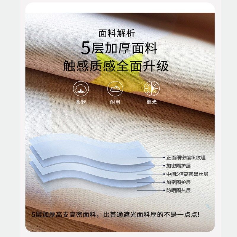 全遮光儿童卡通客厅简约房间强遮挡帘现代窗帘免打孔卧室飘窗整