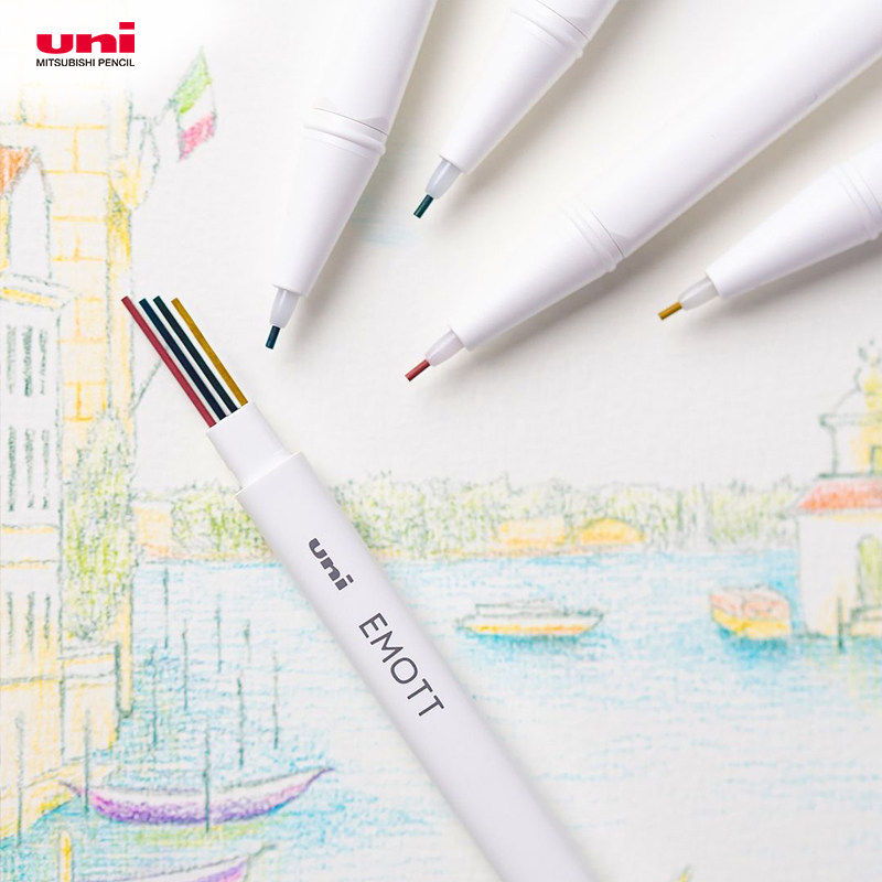日本文具屋大赏日本uni三菱EMOTT彩色自动铅笔0.9mm耐水可擦手帐绘画素描彩绘自动铅笔美术生绘画套装
