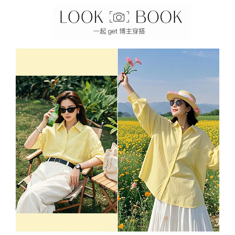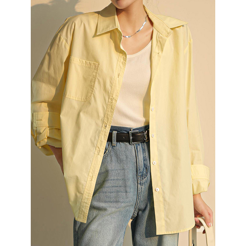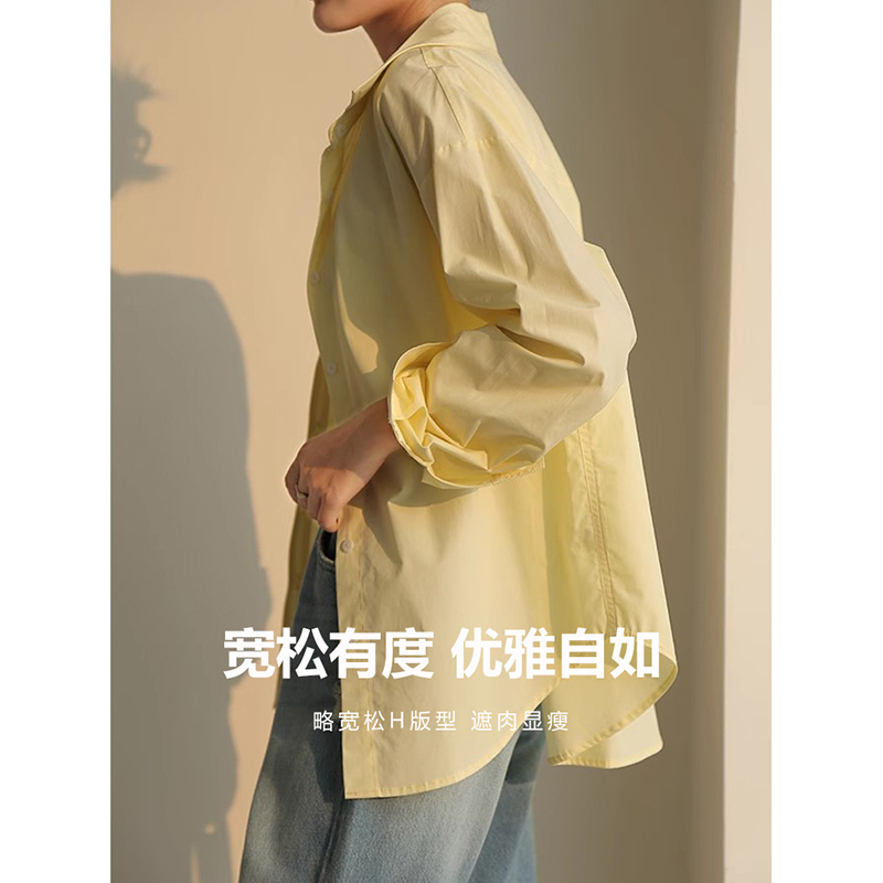 鹅黄色纯棉衬衫女秋季叠穿衬衣