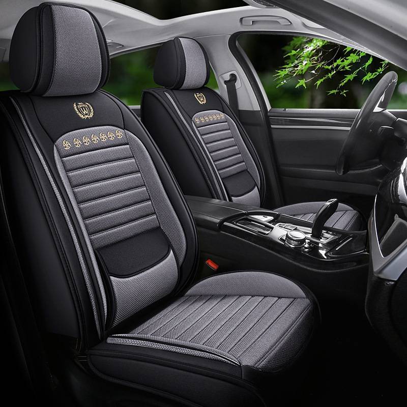 夏季透气汽车坐垫车载按摩五座通用头枕靠垫家车两用亚麻汽车座垫