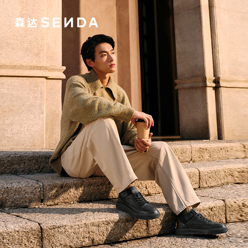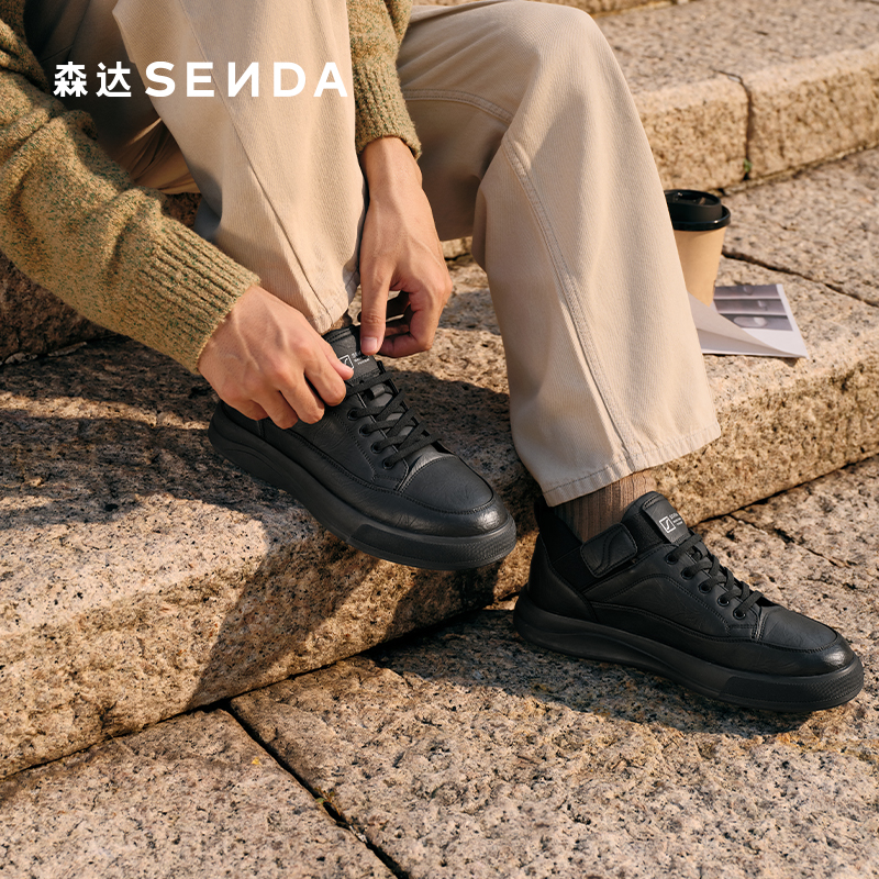 森达板鞋男2025冬新商场同款厚底潮流工装鞋一脚蹬休闲鞋2AR01DM5