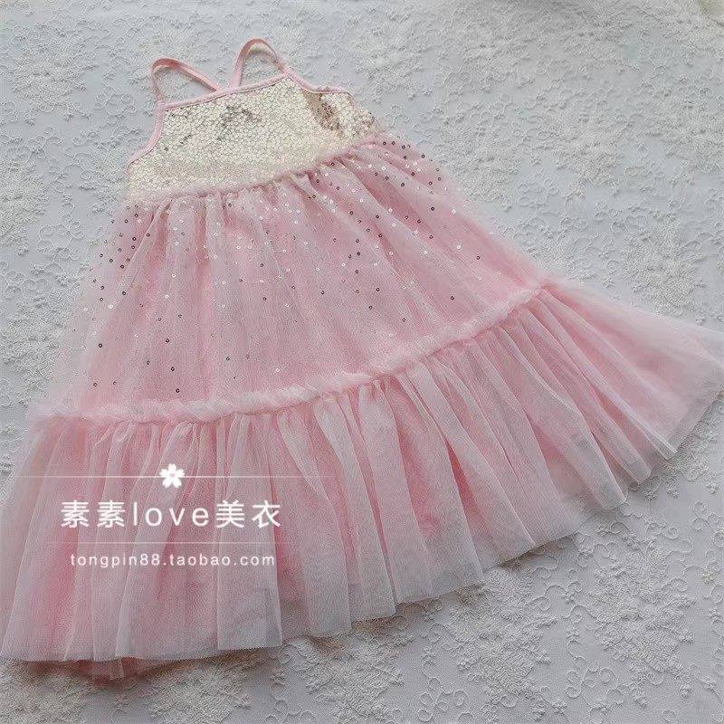 仙仙的~ 三件包邮 澳出口 女中小童1-6岁公主度假亮片礼服连衣裙