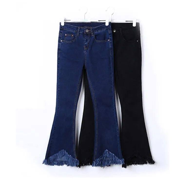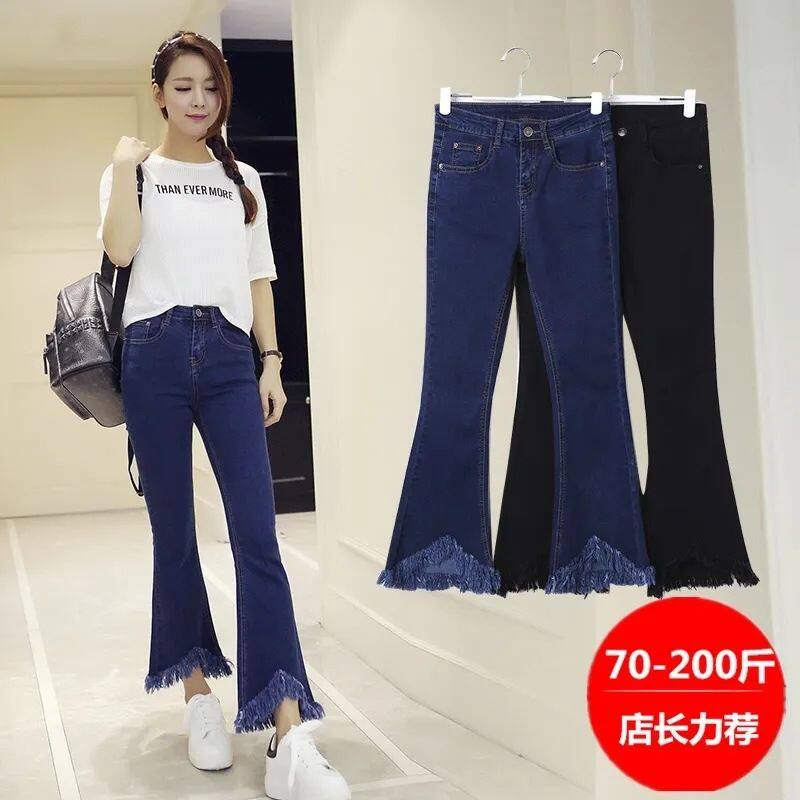 毛边微喇牛仔裤女秋冬新款加绒高腰弹力显瘦九分休闲小个子喇叭裤