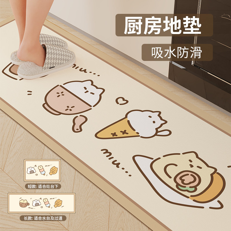 硅藻泥厨房地垫防滑防油吸水垫家用免洗可擦吸水地毯门口耐脏脚垫