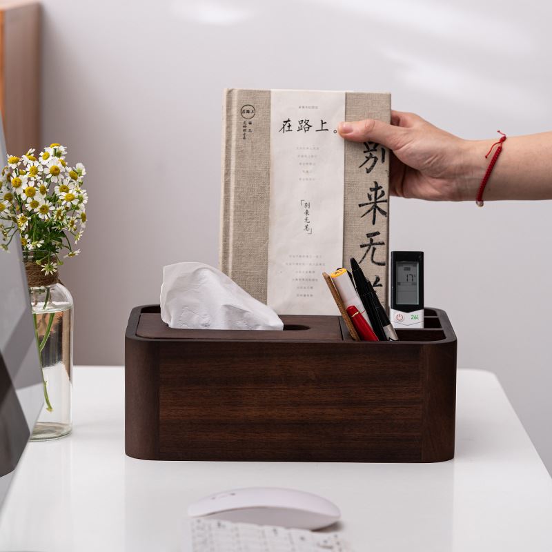 胡桃木纸巾盒客厅遥控器收纳盒餐桌茶几卧室轻奢家用餐巾纸抽纸盒