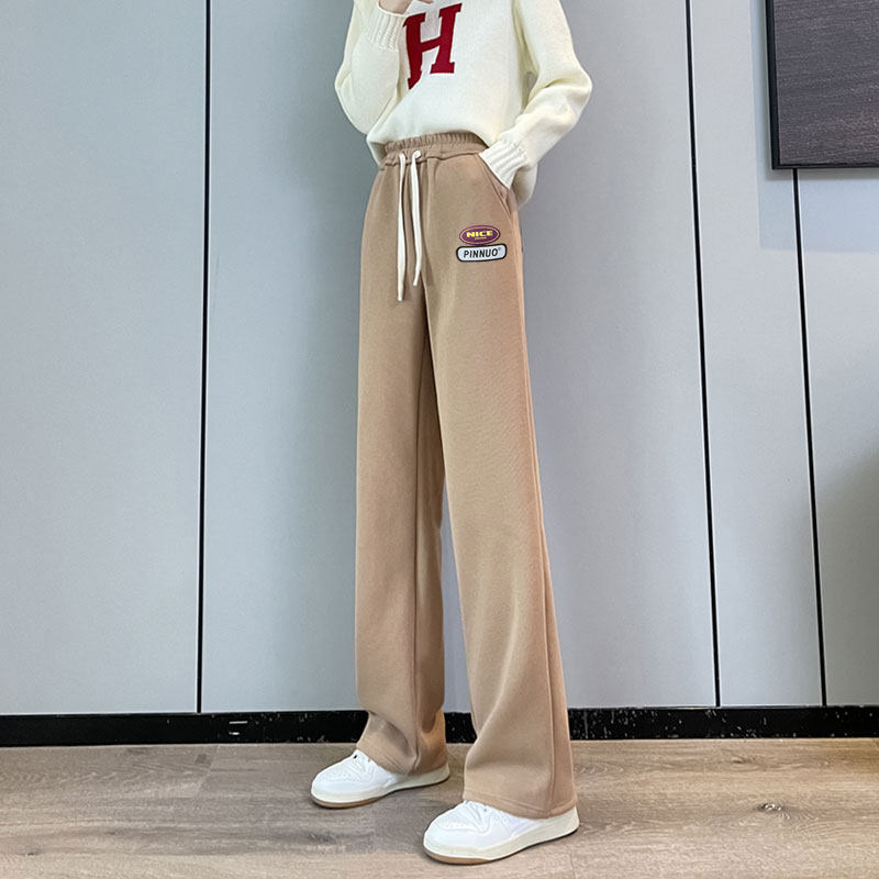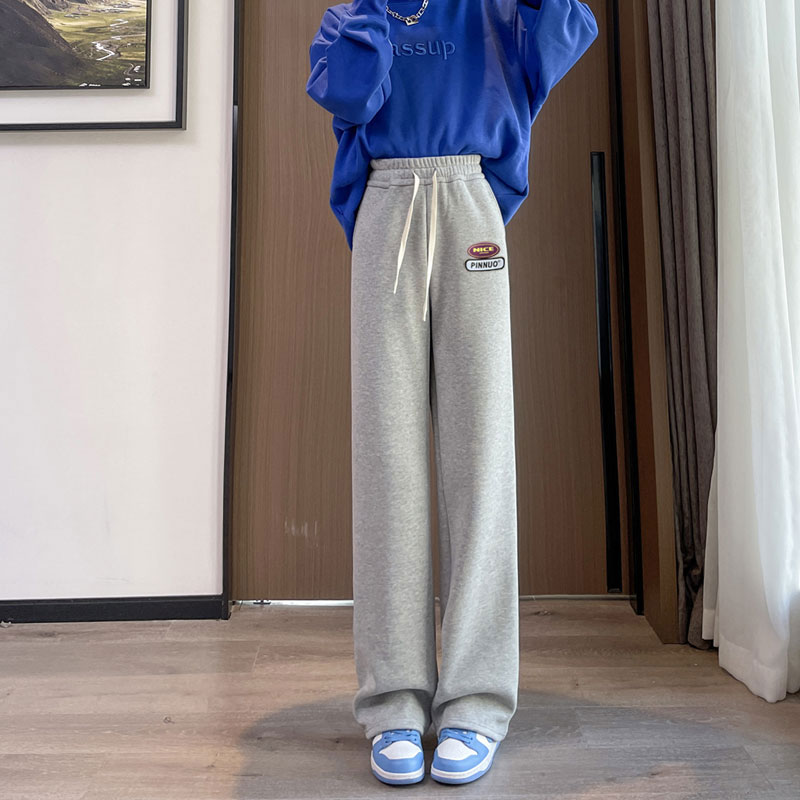 高中初中学生少女加长版裤子高个子春秋冬加绒宽松直筒运动休闲裤