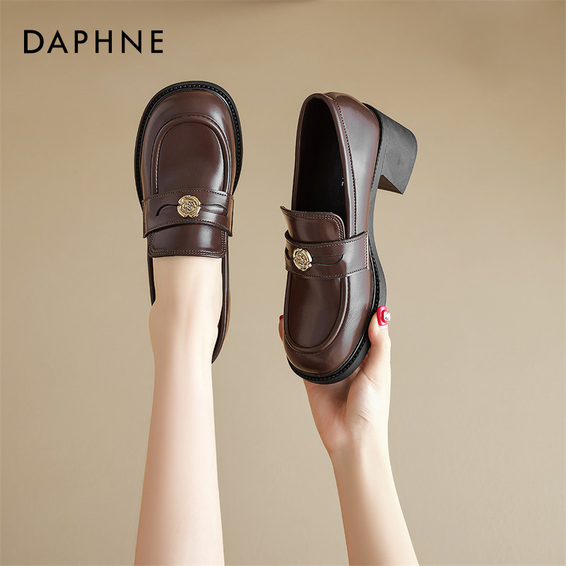 达芙妮复古通勤乐福鞋女2025新款秋山茶花圆头英伦小皮鞋中跟单鞋