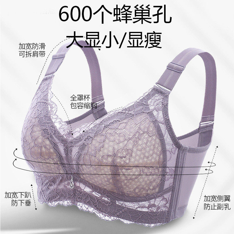 大胸显小无钢圈文胸薄款全罩杯聚拢收副乳防下垂显瘦日常舒适
