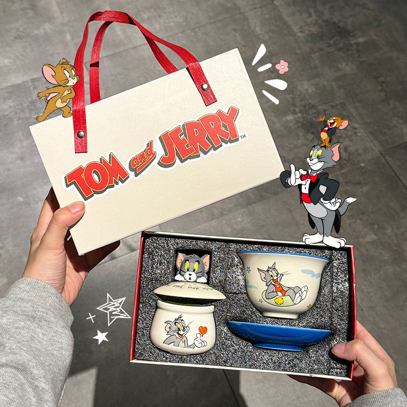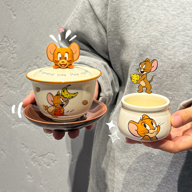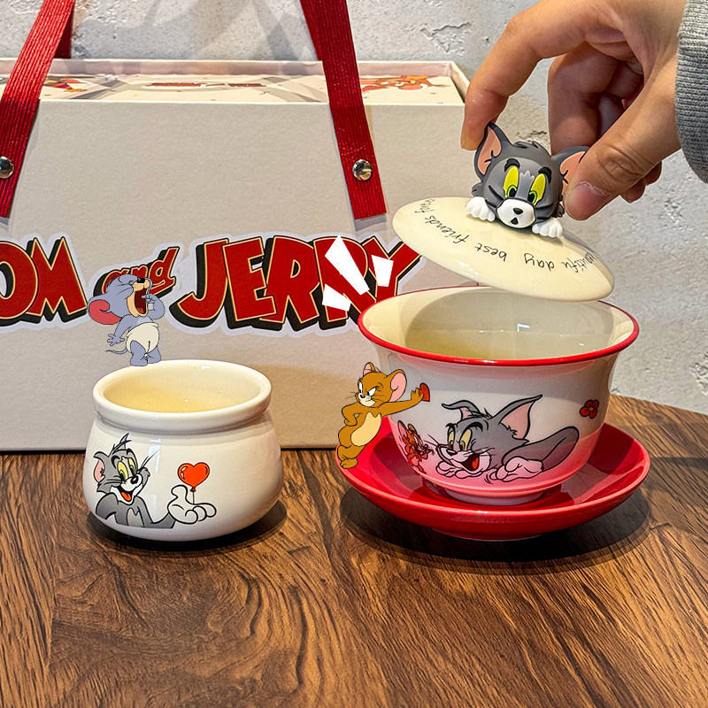 正版猫和老鼠盖碗茶杯功夫茶具套装新婚礼物高颜值生日礼物伴手礼
