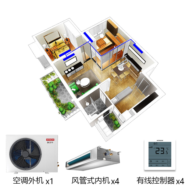 日立中央空调一拖四家用多联机5匹变频冷暖RAS-125HRNAQ智能控制