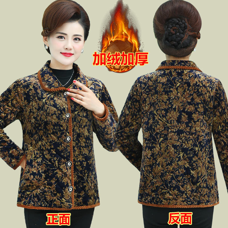 四川省服妈妈秋冬高贵时尚棉衣外套中老年女大码加绒保暖碎花棉衣