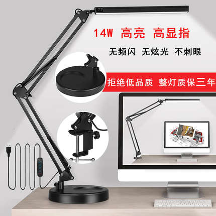 LED长臂折叠护眼台灯卧室宿舍床头阅读学习工作设计桌面夹子2用