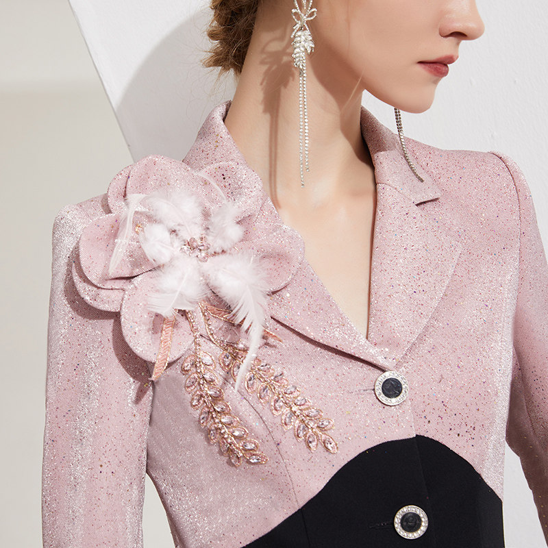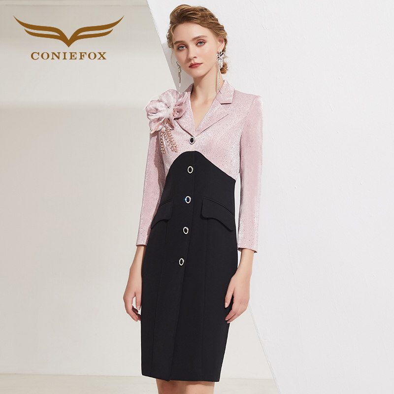 创意狐法式撞色连衣裙名媛女神范秋季流行风格2025新款宴会礼服女