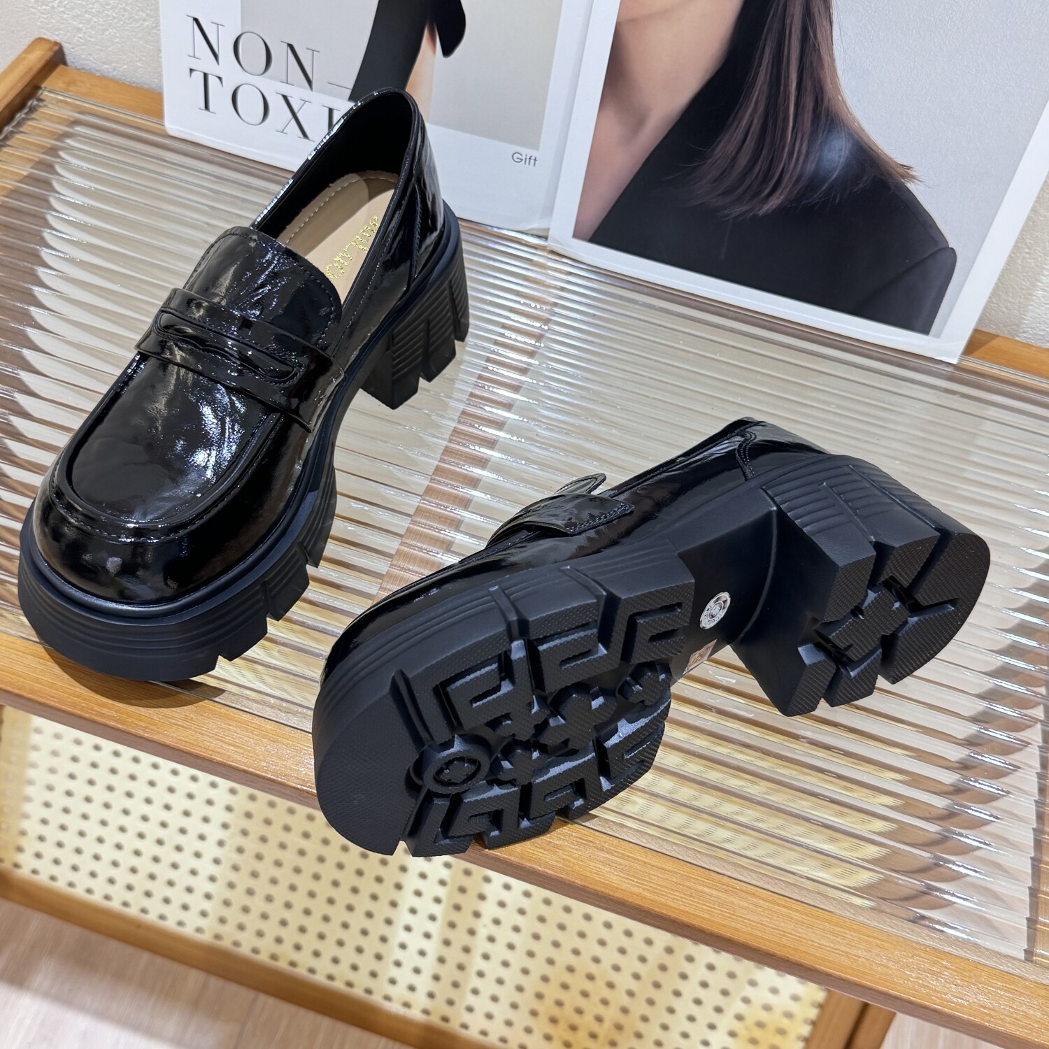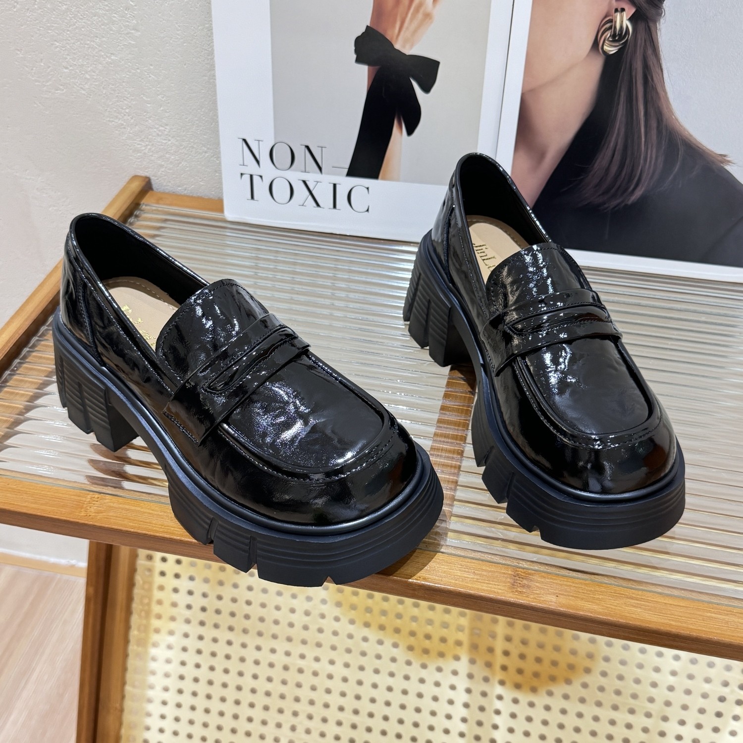 厚底增高6CM小个子乐福鞋女2026春秋新款一脚蹬英伦风松糕小皮鞋