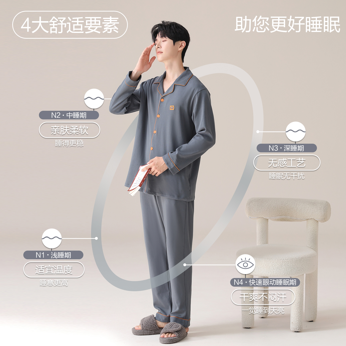 纯棉睡衣男士2025新款全棉长袖男生春秋冬季可外穿大码家居服套装