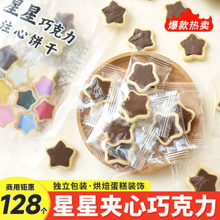 星星饼干蛋糕装饰五角星巧克力夹心曲奇摆件独立包装甜品烘焙装扮