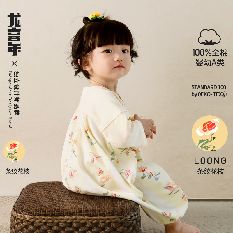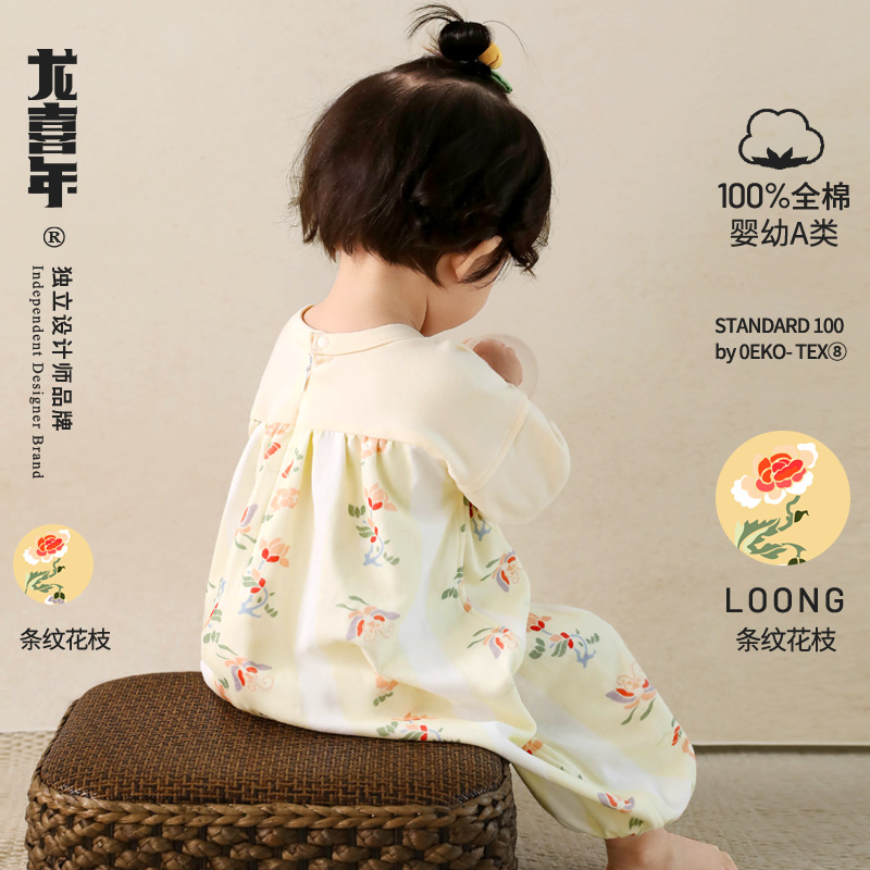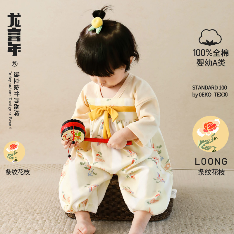 龙喜年新中式婴儿汉服女宝宝衣服纯棉百日周岁国风长袖连体衣冬装