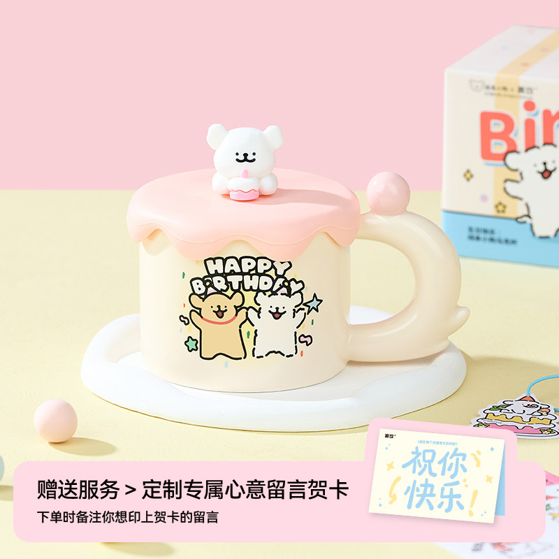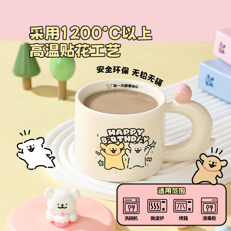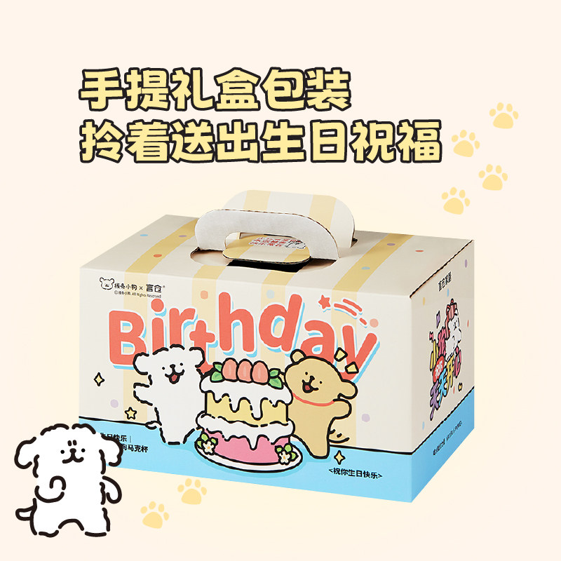 言仓线条小狗联名马克杯女生男生朋友送创意陶瓷水杯新年生日礼物