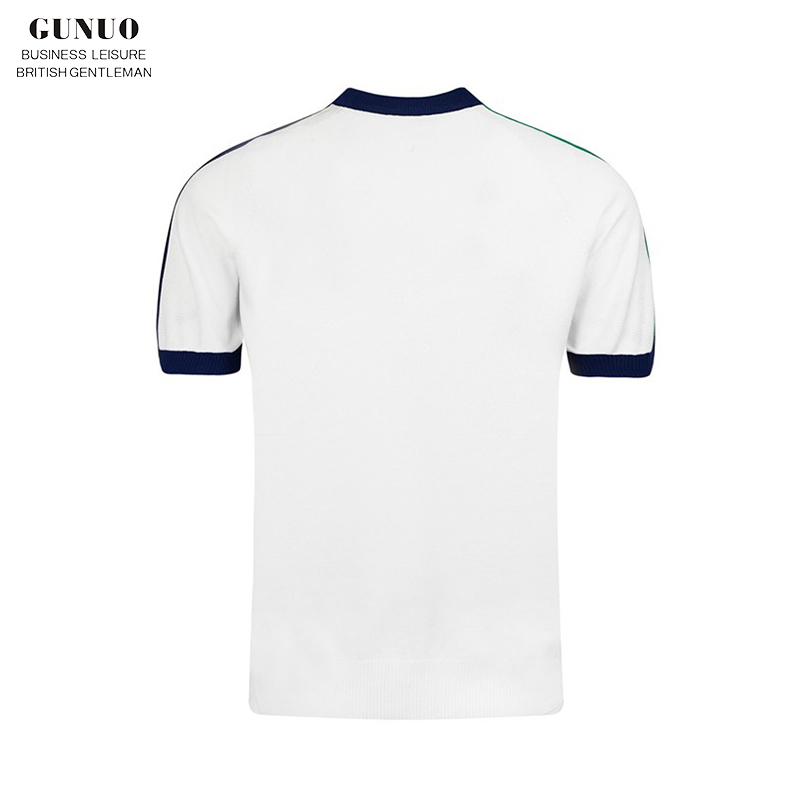 高级白色透气冰丝针织衣服男款 拼接条纹圆领上衣修身男士短袖t恤