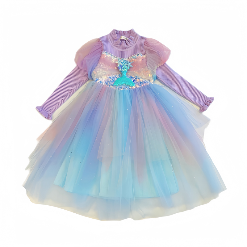 女童美人鱼公主裙春秋儿童加厚毛衣裙小女孩洋气渐变礼服蓬蓬裙子