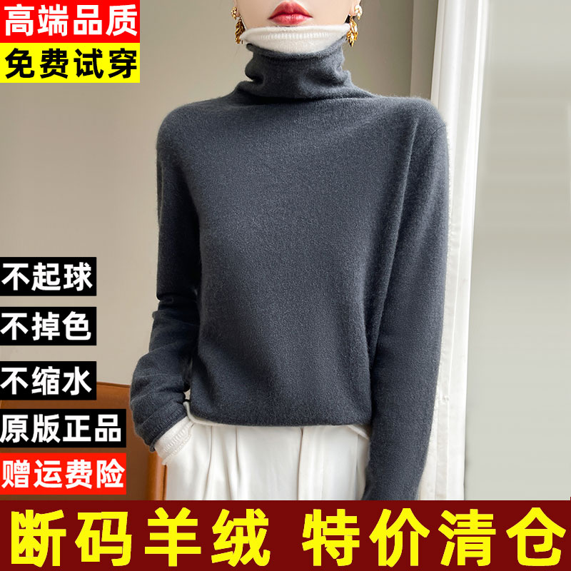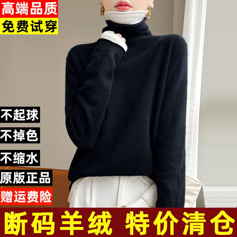 鄂尔多斯市秋冬拼色堆堆高领羊毛衫女时尚宽松假两件针织打底毛衣
