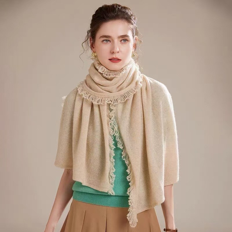 2025秋冬新款100%澳洲羊毛亲肤感软糯保暖纯色针织羊绒流苏围巾女