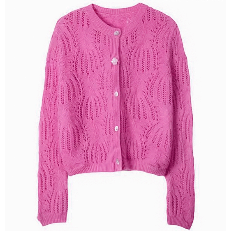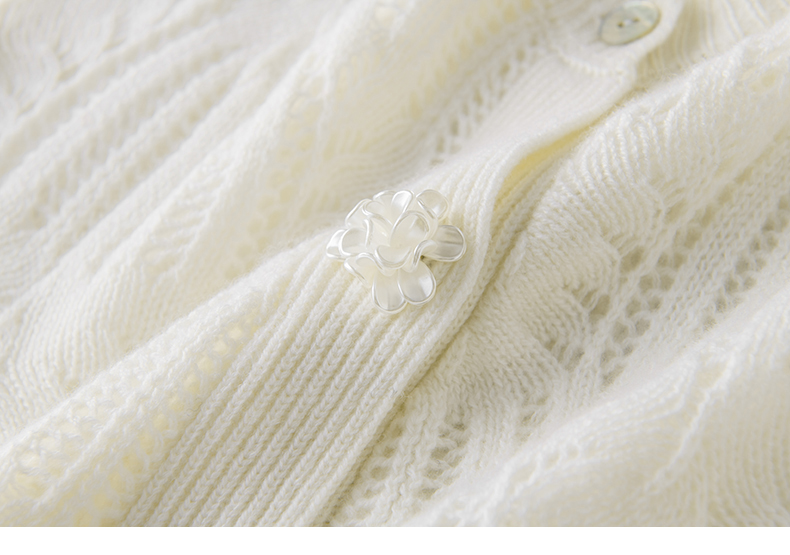 美极了哇!花朵扣羊绒开衫女纯羊绒毛衣镂空针织开衫外套秋冬新款