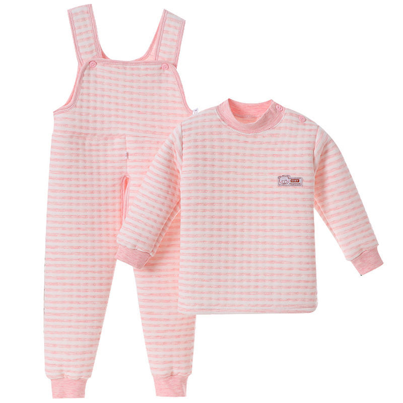儿童背带裤三层夹棉保暖内衣套装男童女宝宝开档背带秋衣秋裤纯棉