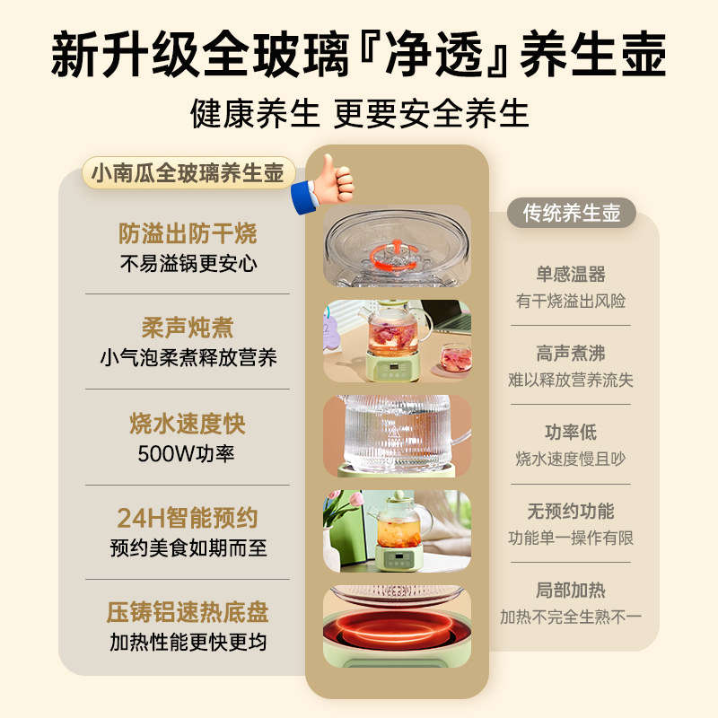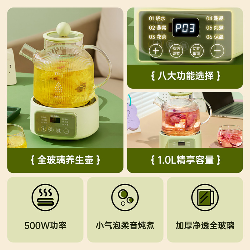 小南瓜全玻璃养生壶小型多功能恒温花茶壶办公室煮茶器电炖烧水壶