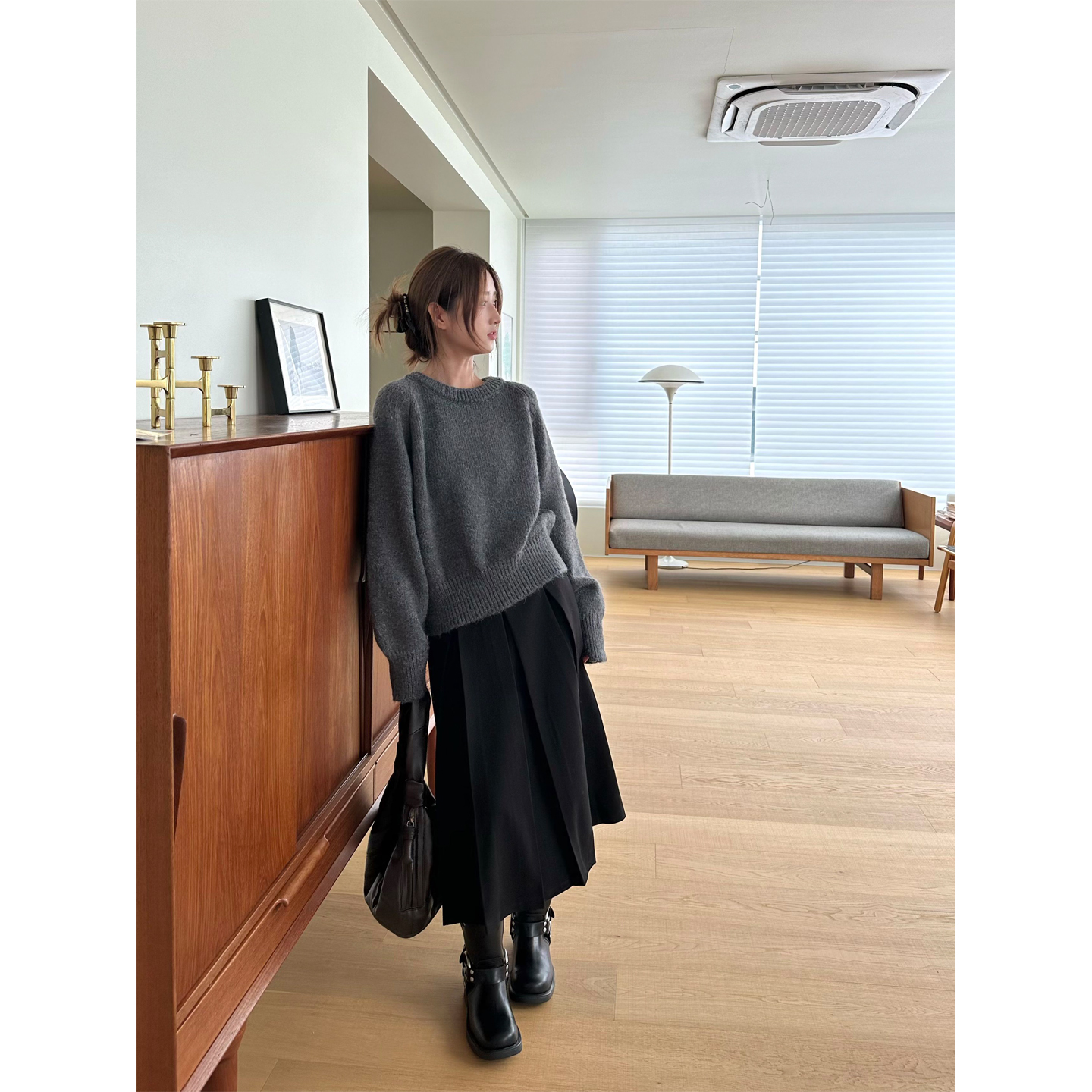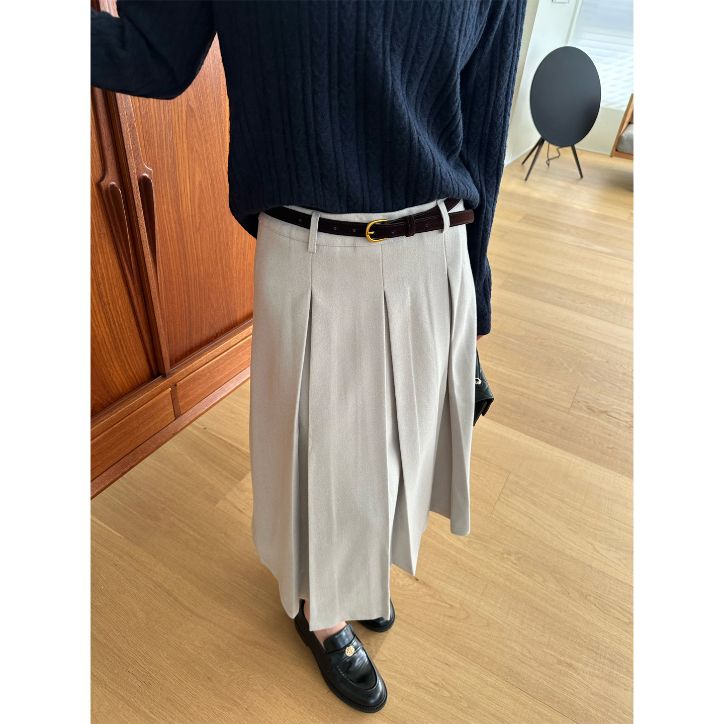 小阿秋毛呢百褶半身裙女秋冬显瘦配腰带百搭小众气质休闲中长裙子