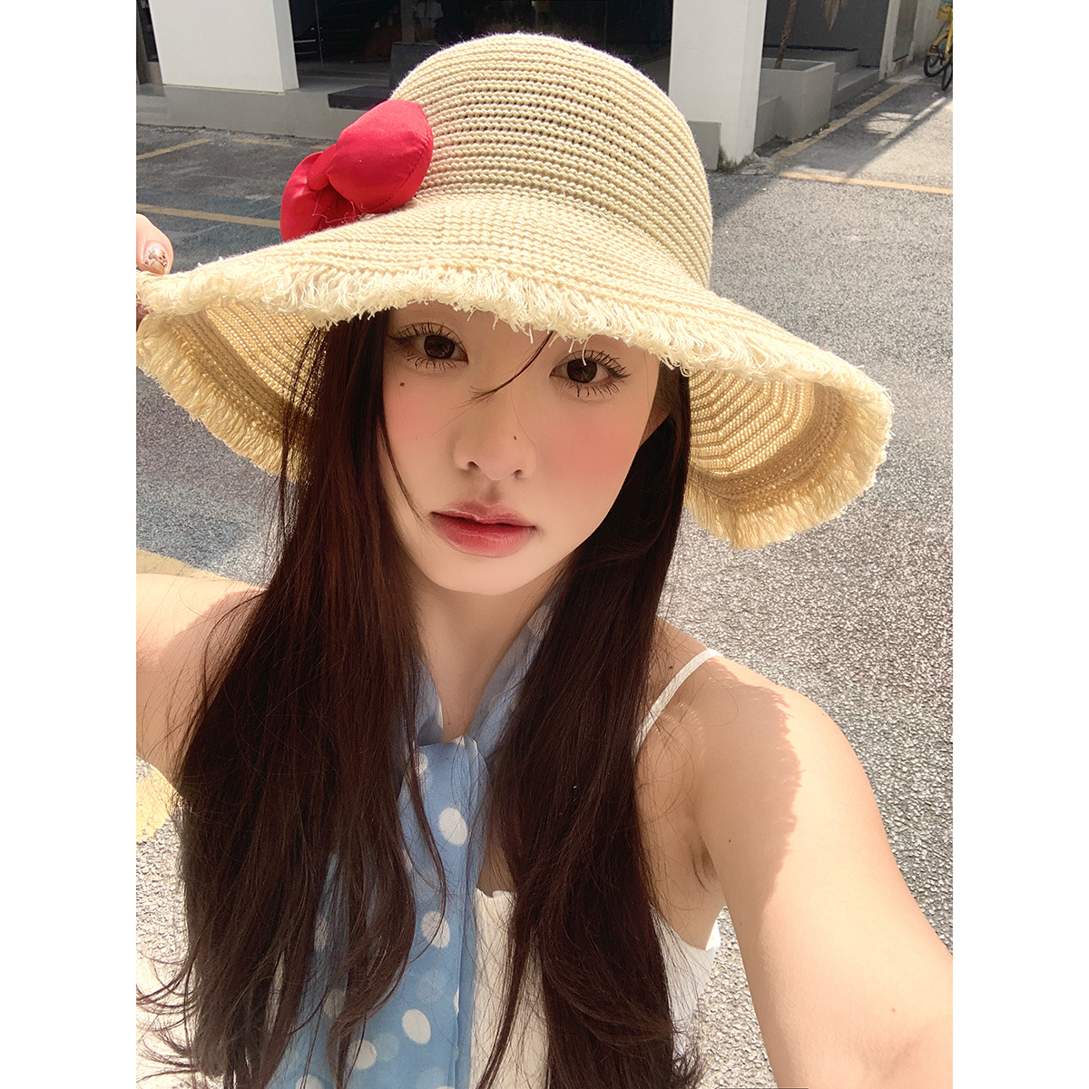 防晒帽子海边度假风蝴蝶结草帽