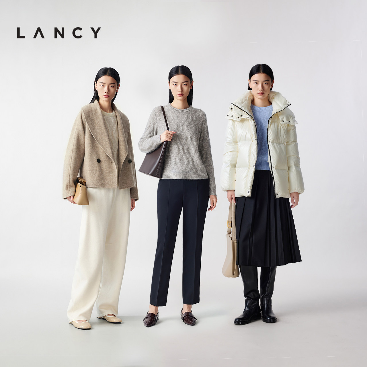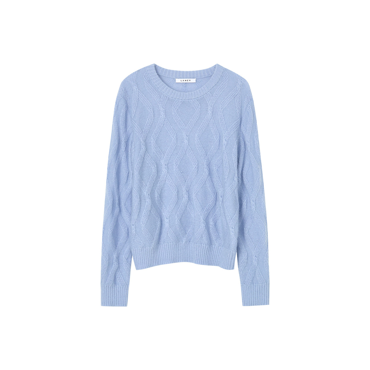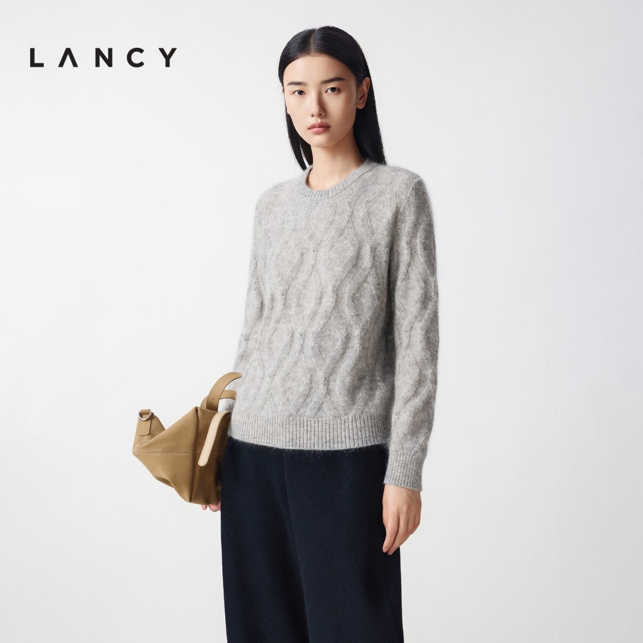 LANCY/朗姿2025冬新款气质羊毛马海毛绞花针织衫女秋时尚短款毛衣