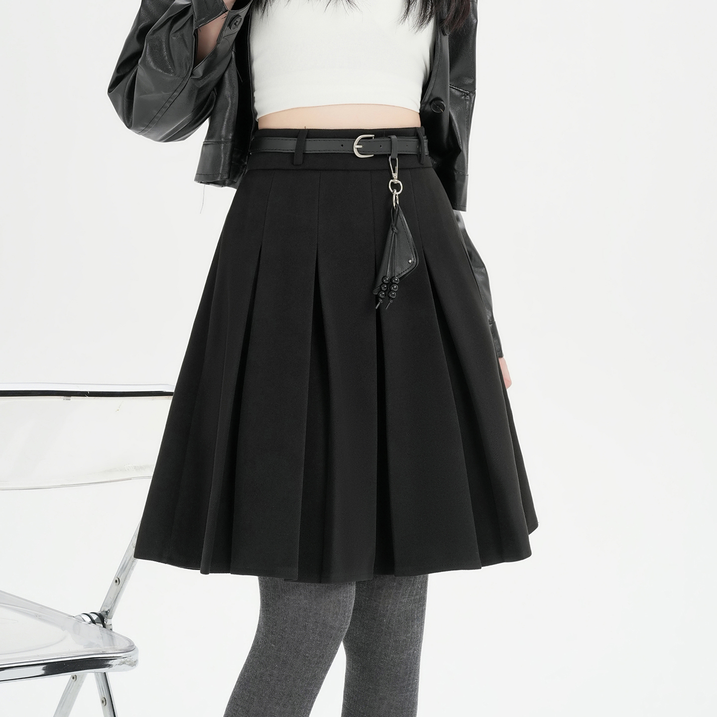 学院风高腰毛呢百褶半身裙女短裙2025秋冬小个子遮胯显瘦jk裙中裙