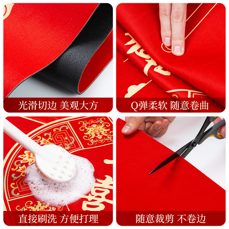 新年款硅藻泥入户门地垫半圆形进门口吸水耐脏蹭土脚垫喜庆红地毯