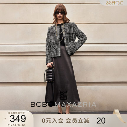 BCBG秋冬女装优雅蕾丝气质下摆拼接缎面垂感黑色半身裙长款